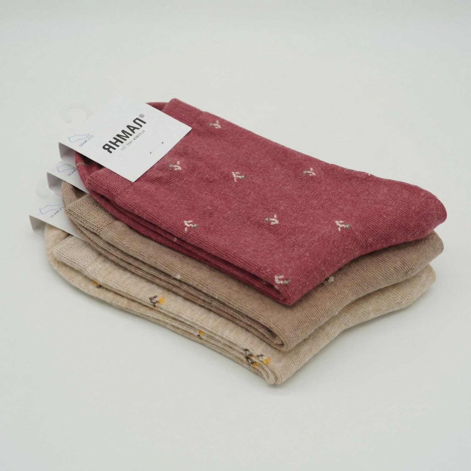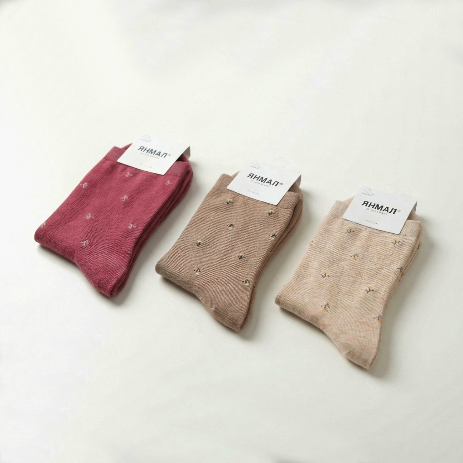 Зөөлөн өнгө, жижиг цэцгэн хатгамалтай энэхүү оймс нь энгийн, цэвэрхэн, эмэгтэйлэг хэв маягт төгс зохицно.